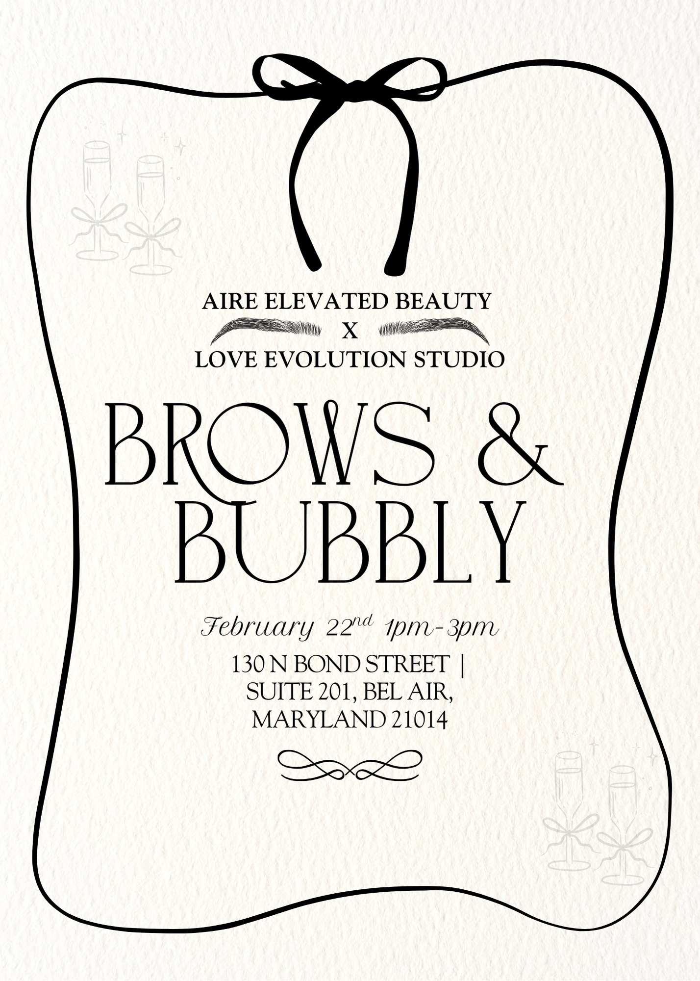 Aire pop-up event at Love Evolution Yoga Studio, Bel Air! Discounted service prices, complimentary bubbly and all things brows!